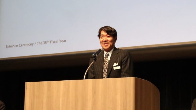 ベイクルーズは147人を採用した。昨年9月に就任した古峯正佳社長は、「一人でも多くの人に高揚感と幸せを届けるのが私たちの仕事。受け身ではなく、自ら学びを獲得する姿勢でいてほしい」と語った。そのうえで「挑戦と失敗を繰り返した経験こそが自分を成長させる。ベイクルーズ号のたくましいクルーになってほしい」と話した。