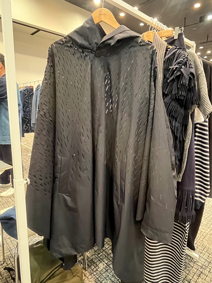 披露したコレクションのテーマは「ユースレス」。機能性を強調した服があふれる状況へのアンチテーゼとして、機能をあえて無効化し、装飾へと転化した。例えば、レインコート生地にレーザーカットで雨模様の穴を無数に開けた服。素材自体は撥水(はっすい)だが、穴を開けることで「雨を防ぐ」という本来の機能を失わせた。