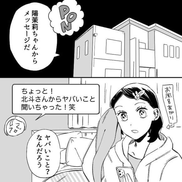 陽茉莉ちゃんからのメッセージを見て、驚く主人公。