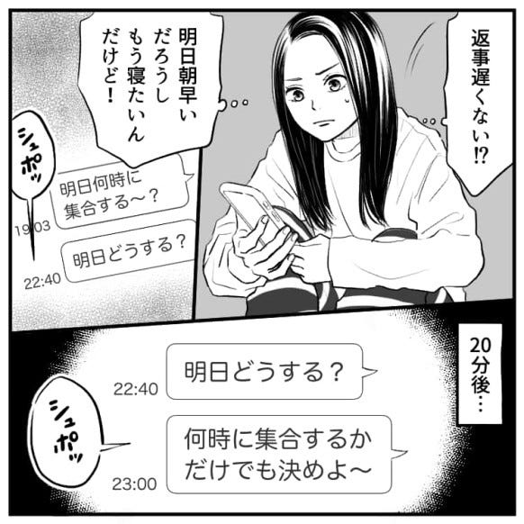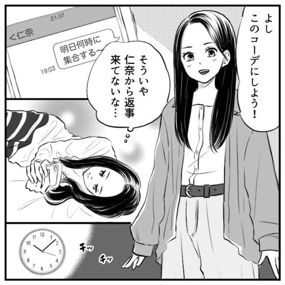 彼女は集合時間を決めるため仁奈に連絡をしますが、返事が来なくて……?