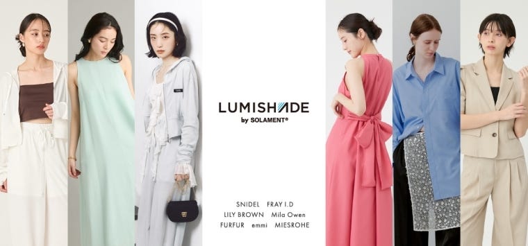 マッシュスタイルラボは紫外線や近赤外線の遮断機能を備えた素材「ルミシェード・バイ・ソラメント」を採用した。26年春夏から「スナイデル」など主力7ブランド横断で、同素材を使った商品を販売している。住友金属鉱山が開発・製造する機能素材「ソラメント」を活用し、マッシュと瀧定名古屋が共同開発したのがルミシェード・バイ・ソラメント。肌にダメージを与える紫外線に加え、近赤外線を遮断する機能が高い。布帛とニットに使え、様々なカラーバリエーションも出せる。