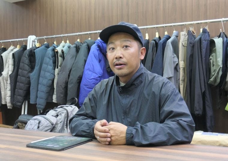 合繊の機能アウターウェアが主力の自社ブランド「ジュゲム」の販促も強化している。同ブランドは「いかにもアウトドアウェア過ぎず、日常のファッションで使える機能ウェア」。立ち上げたのは21年。当初は自社ECだけだったが、23年から卸売りにも着手した。並行して年4、5回程度の期間限定店の出店を続けている。今は直営店の出店に向けた物件探しも始めた。