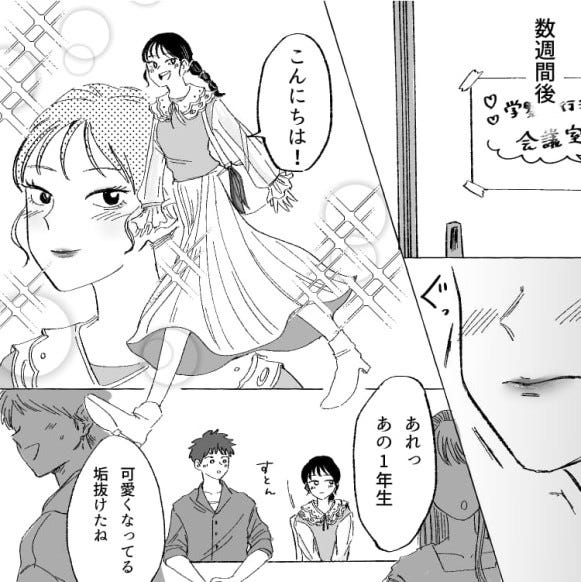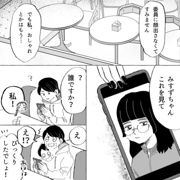 主人公は喜んで彼女にいろいろなアドバイスをします。しかし、その後後輩がアドバイスをもとにおしゃれをしたところ、委員会のメンバーや好きな人に引かれてしまい……。