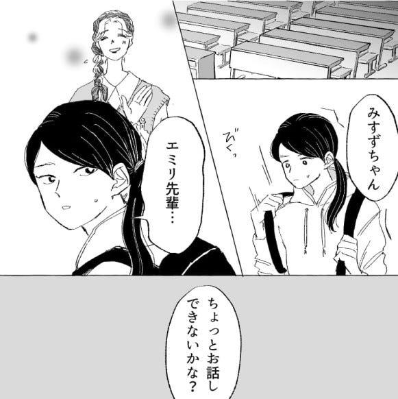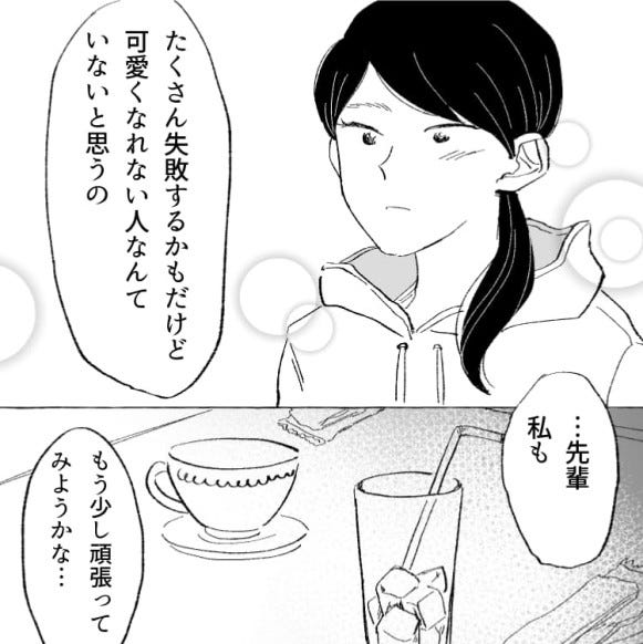 ショックのあまりに教室を飛び出した後輩を追いかけた主人公ですが、彼女は「おしゃれなんかするんじゃなかった」と言って去っていきました。