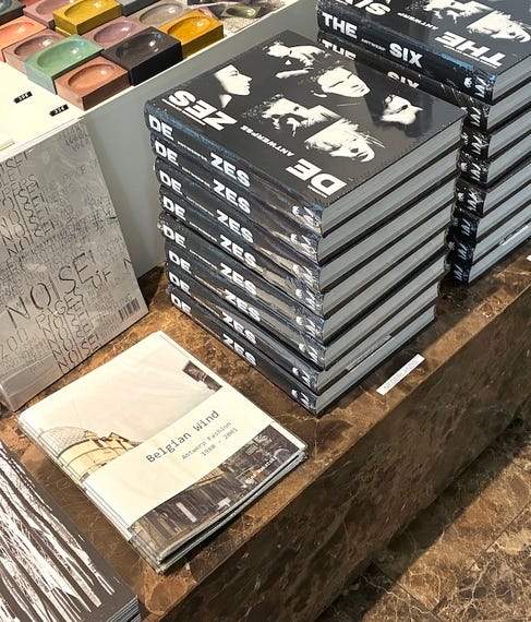 というわけなのだが、アントワープ・シックスと繊研新聞の素敵な関係は、ミュージアムショップへと続く。展覧会カタログの隣に置かれた「Belgian Wind: Antwerp Fashion 1980 -2001」という小冊子のような書籍である。