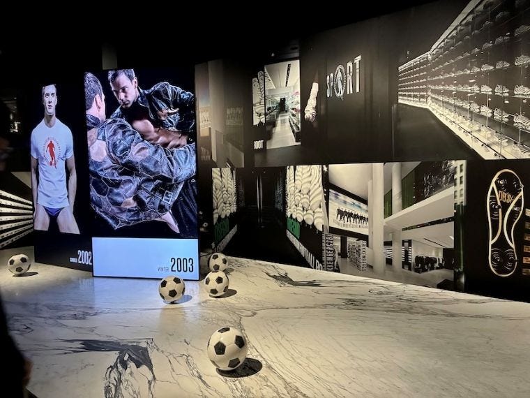 最初に登場するのはダーク・ビッケンバーグ。メンズウエアを中心にスポーティーな服や実際にスポーツとの関係がある作品、キャンペーン写真などが展示されている。