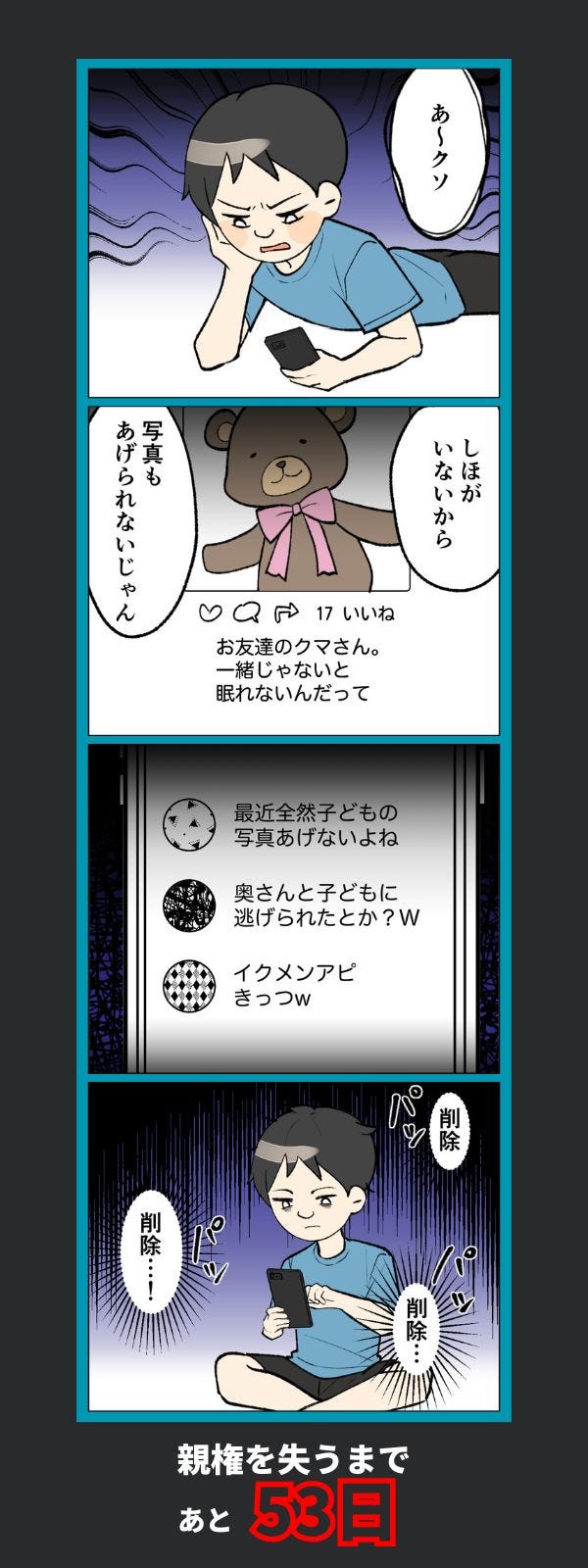妻子より“炎上対策”優先!? SNSで不都合なコメントを消し続ける夫【100日後に親権を失う育メン 第47話】