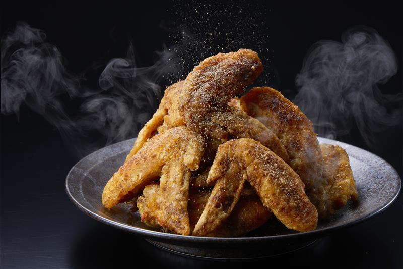 「手羽先唐揚げ」(左から)秘伝のスパイス味、魅惑の甘辛ダレ味 85円(1本) 専門店を徹底的に調査して開発した手羽先唐揚げは、ホワイトペッパーと花椒(ホアジャオ)をブレンドしたしびれる辛さの「秘伝のスパイス味」、強めのコショウと甘めのタレのコンビネーションがたまらない「魅惑の甘辛ダレ味」の2種類をスタンバイ。おかずにも、ビールのおつまみにも最高です。