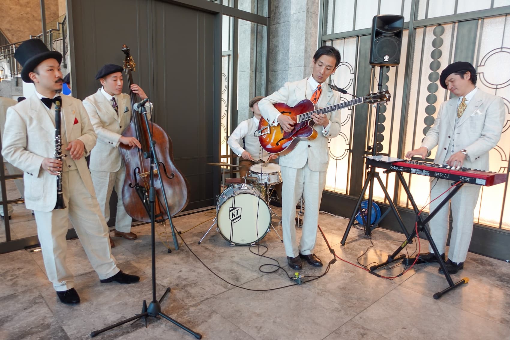 メディア取材会では、フォトセッションやカクテルレセプションも実施されました。会場となった「ピーコック・アレー」の大きな窓からは、夕景から夜景へと移ろう美しい景色が見渡せ、その景色はプライスレスの美しさ。総支配人や副支配人をはじめ、海外出身のスタッフが多く、弦楽の生演奏が響く空間は、まるで異国の社交場のよう。日常を離れた、優雅なひとときを堪能できました。