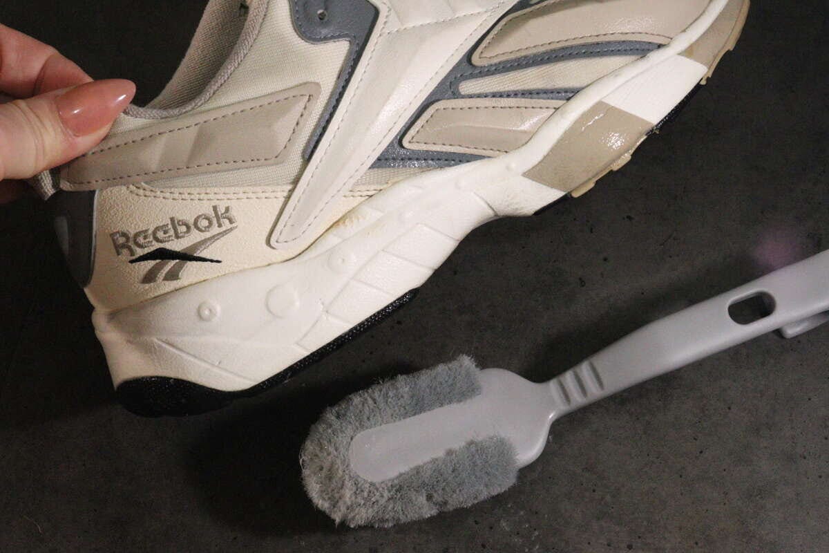 スニーカーの隅々まで力を入れやすく、汚れをこすり落としやすい設計になっています。