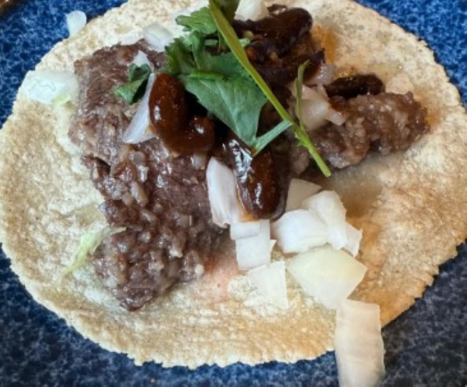 京都・四条高辻「ロティー チキン アンド ジャッキー タコス」の「Arrachera 牛ハラミのタコス」(1個/715円)