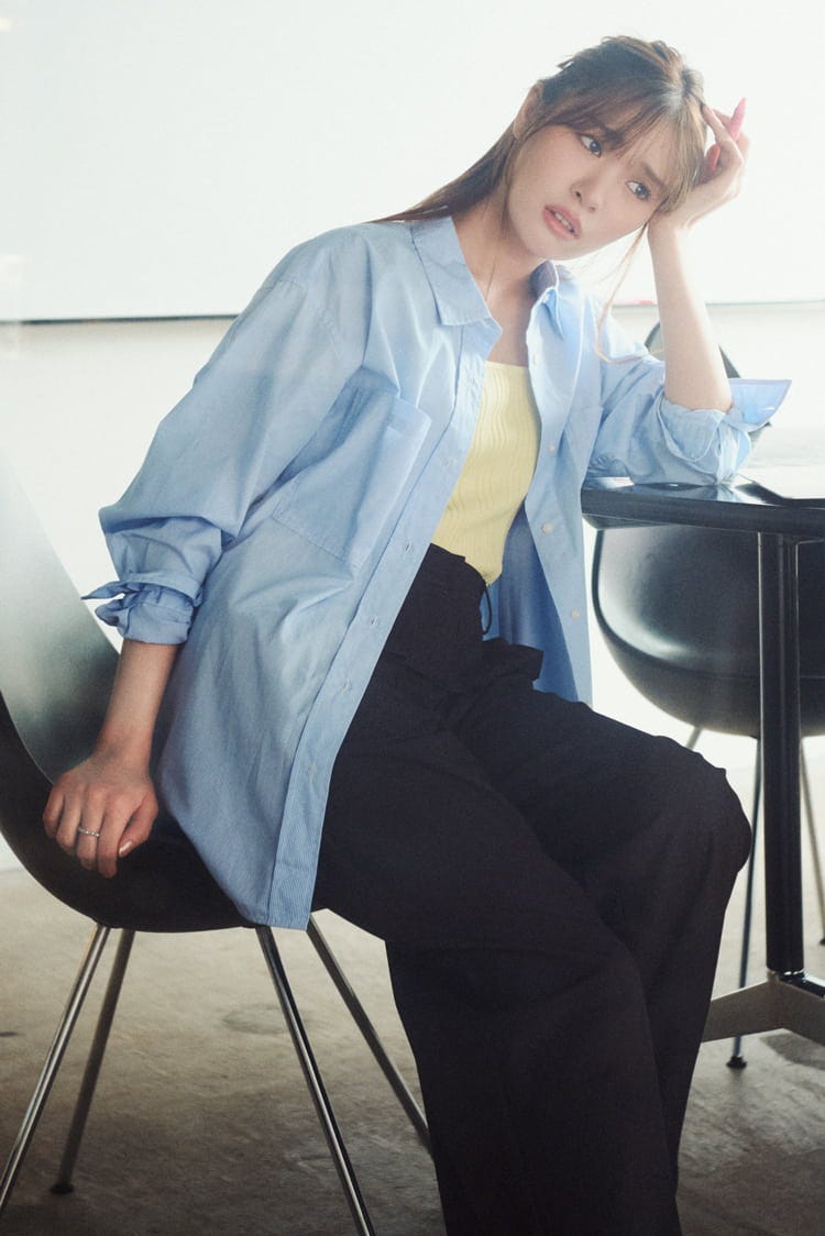 ブルーシャツをさらっと着こなして、爽やかに大人っぽく♡