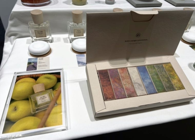 「E&M長谷川パートナーズ」(F-06)はフランス各地の風土をイメージしたフレグランスブランド「ポエシレ」を見せる。