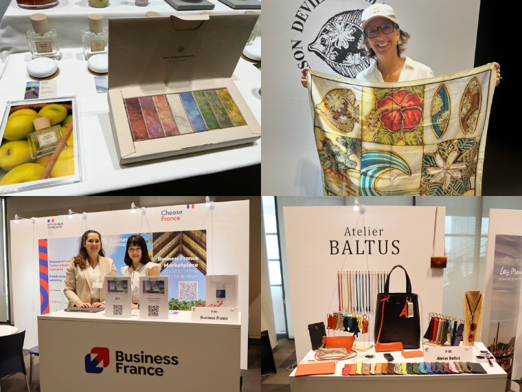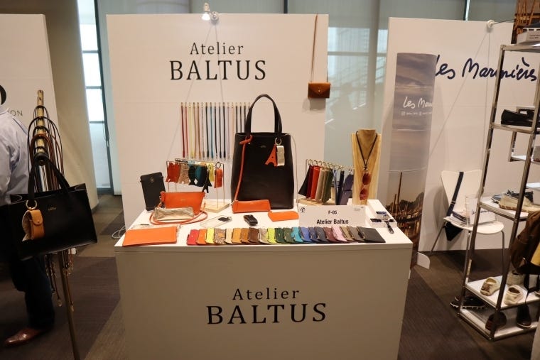 フランス発ブランドを集積したブースが見どころだ。自国の文化に着想したデザイン、職人技を生かした物作りを強みとするバッグやシューズ、スカーフ、コスメなど9社が揃った。日本初お披露目となるブランドも多いため、今回を皮切りに認知拡大と販路開拓を目指す。