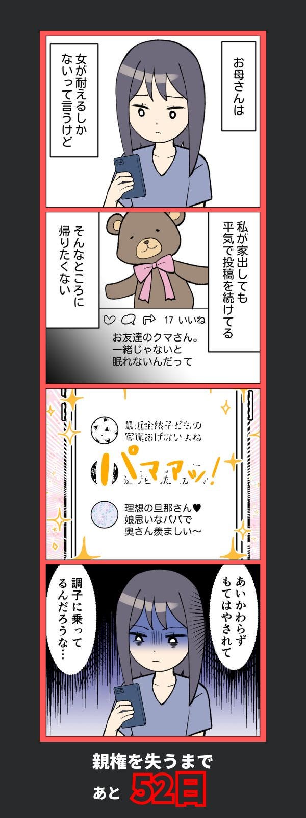 妻がいなくても“いい夫”扱い…? 変わらず投稿を続ける夫に、妻の心が冷めていく【100日後に親権を失う育メン 第48話】