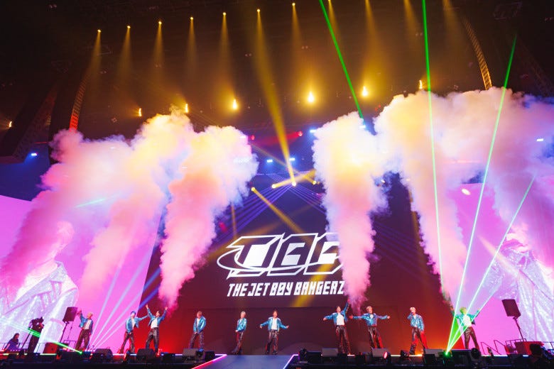 3人のボーカルとプロのダンスリーグに所属する7人のDリーガーから成る10人組・THE JET BOY BANGERZ(以下、TJBB)