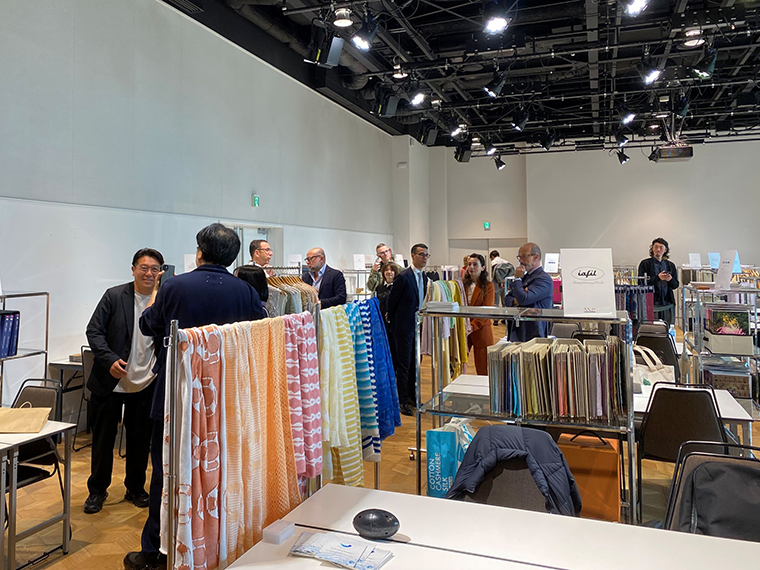 開会式では伊大使館貿易促進部のジャンパオロ・ブルーノ部長から紹介を受けたヴァッターニ氏が「養蚕業をきっかけに日伊が国交を樹立して160周年の節目にこの場であいさつでき、光栄だ」と述べた。4月15日は伊産業の革新性を世界で伝える「メイド・イン・イタリーの日」であり、「紡績はイタリアの卓越した物作りを代表する産業」と期待を示した。
