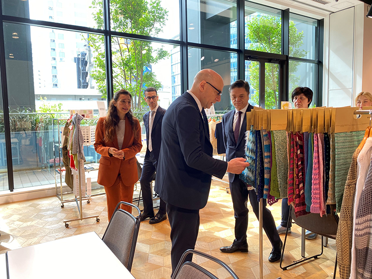 イタリア製ニットヤーンに特化した「27年春夏ワークショップ・フィラーティ東京イタリアンヤーン展示商談会」(主催はイタリア大使館貿易促進部)が東京で開かれた。開会式には伊駐日大使のマリオ・アンドレア・ヴァッターニ氏らが出席した。