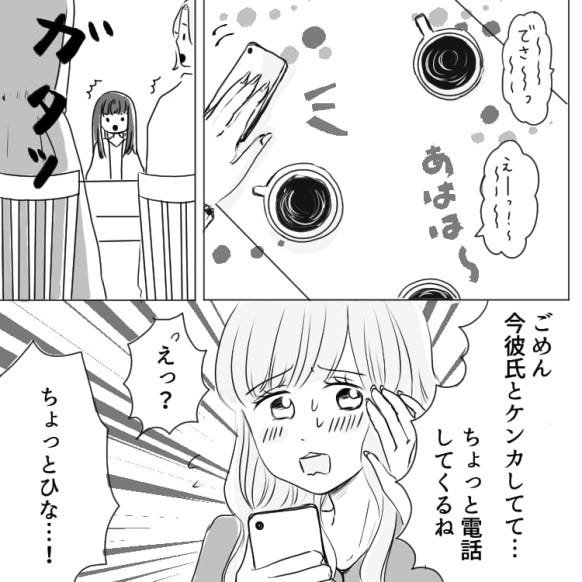 「今彼氏と喧嘩してて...」食事中に彼氏と電話!?非常識な友だちに、痺れを切らした主人公たちが【まさかの発言】を..!