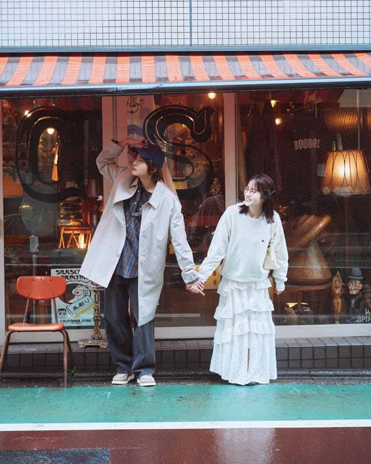 ふたりで着るシャツを古着屋さんへ一緒に探しに行くのも、カップルならではの楽しみ方。長〜く使える定番柄に思いを込めて♡