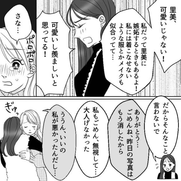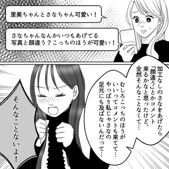 ある日遊んだときに撮った写真を、自分だけ加工してSNSに投稿した里美。
