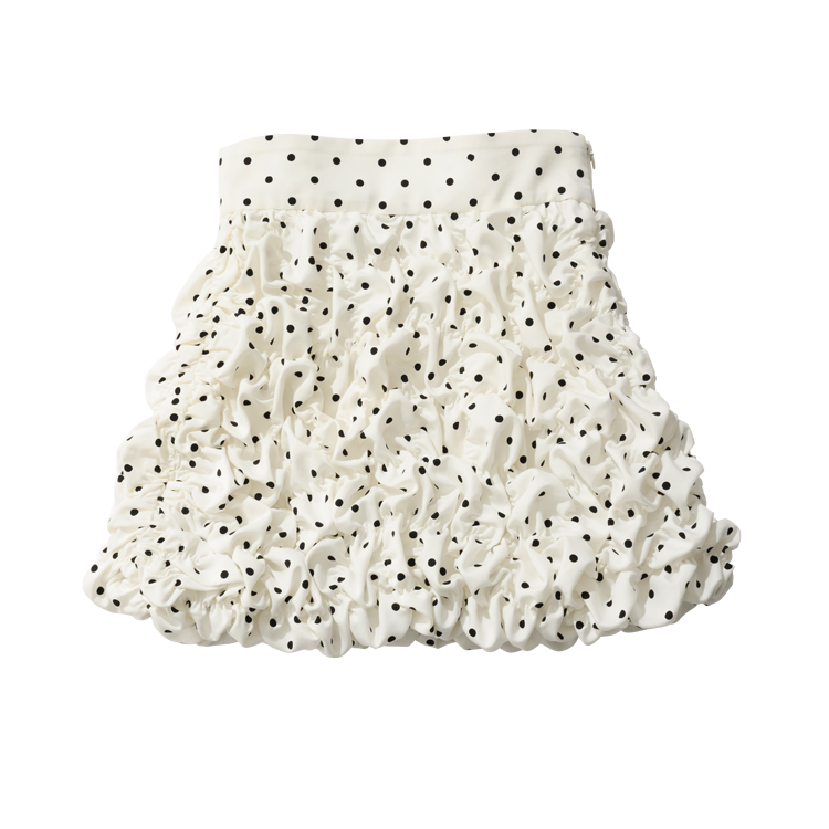 ロマンティックな魅力を演出できるドット柄は引き続きトレンド継続中。柄のみならず、シュリンク加工されたデザインで乙女な雰囲気を存分に楽しめる。