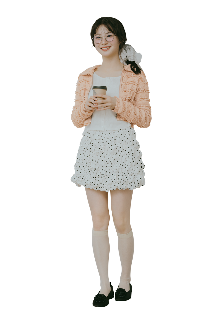 ふんわりシルエット×淡い色が映える春コーデ。メガネやヘアアクセの存在感が、こなれた印象を引き立てる♡