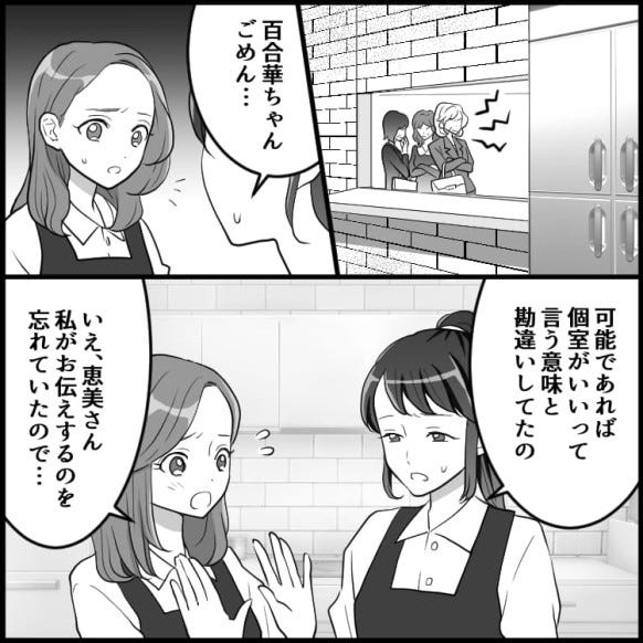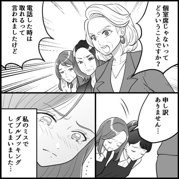 個室予約のダブルブッキングをしてしまった百合華。
