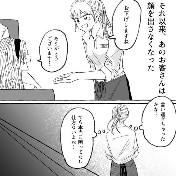 主人公は彼に引きながらも、お客さんなので冷たくあしらうこともできず……。