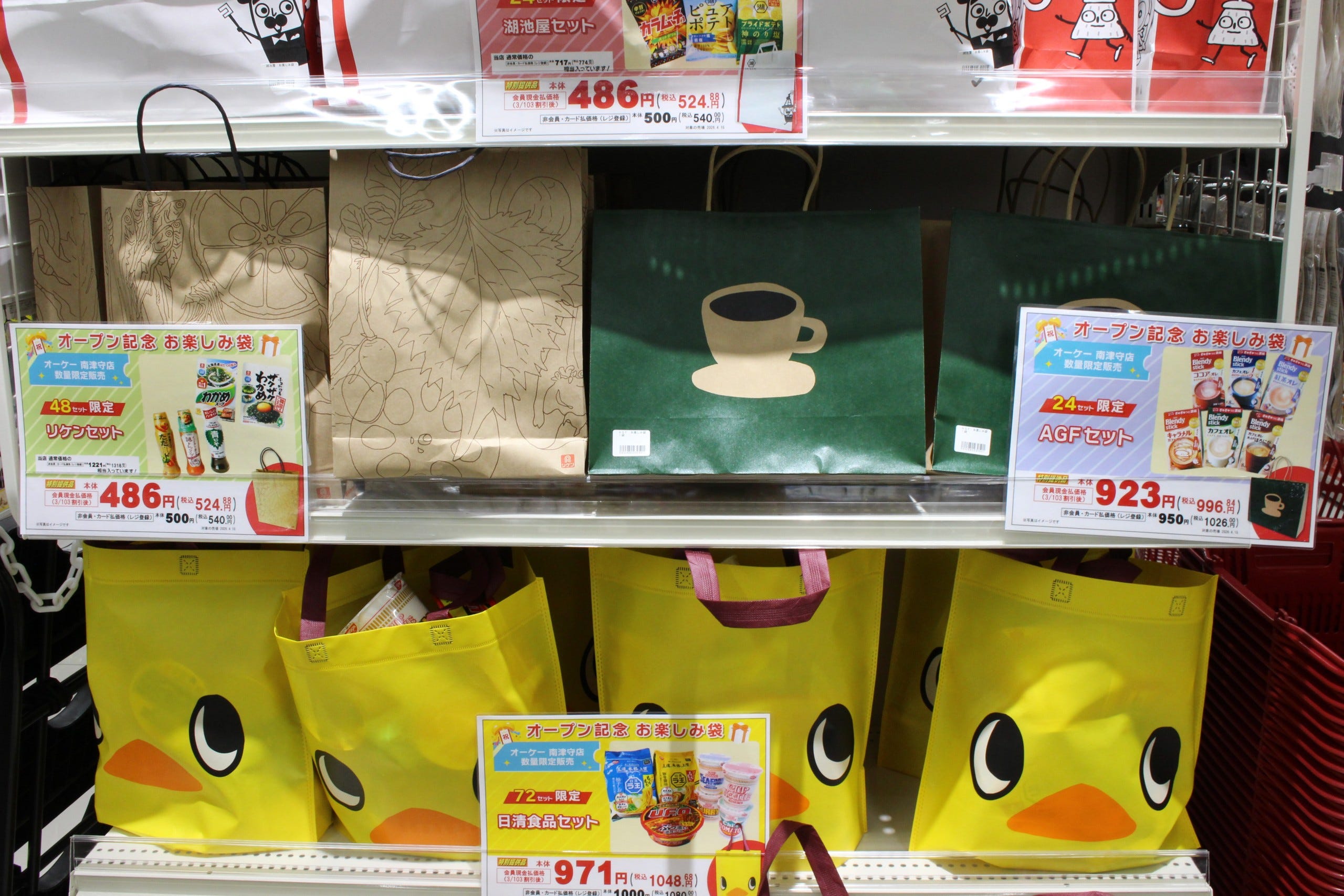 ※現在は販売終了 オープン当日は、ふだんは並ばない特別な商品も。メーカーとコラボしたオリジナルの「お楽しみ袋」や、オープン記念価格の握り寿司など、お得感満載の商品が数量限定でならびました。