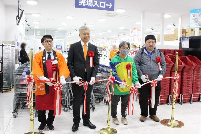 オープン当日は開店前から約200人の行列ができ、先頭の人は午前7時30分からならんでいたそうです。オープニングセレモニーが執り行われ、予定より15分早く開店すると、店内は一気に活気づきました。