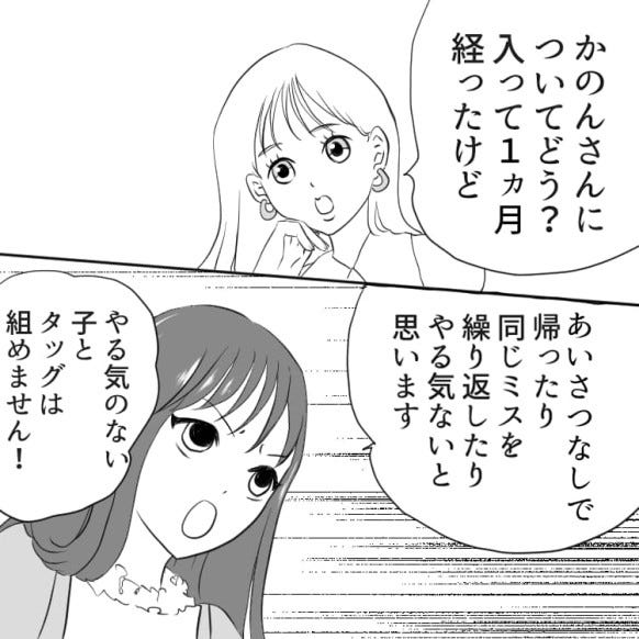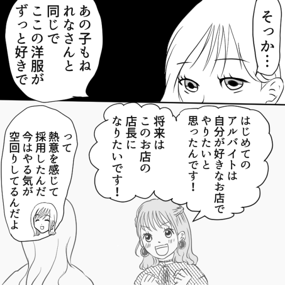 アルバイトリーダーを務める主人公は、新人の子を育成することになりました。ある日、彼女がいつまで経っても仕事を覚えないので、主人公は厳しく叱りつけます。