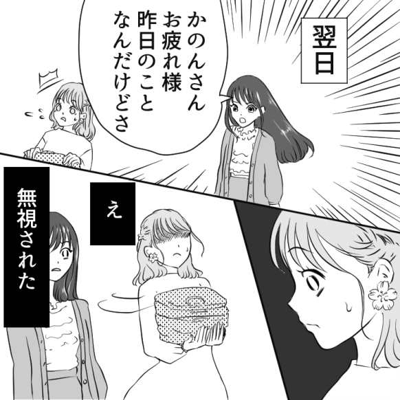 すると、彼女は叱られたのがショックだったのか、主人公にあいさつをせず逃げるように退勤しました。