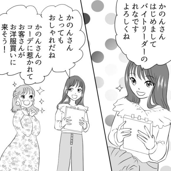 アパレルショップでアルバイトリーダーを務める主人公は、新人のアルバイトの子を育成することになりましたが……。