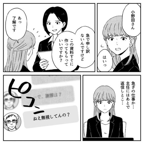 友だちや彼氏、バイト先の上司や先輩など、身の回りで起こったことに悩んだことはありませんか?今回、Ray WEB編集部は職場のチャットについて読者に話を聞いて漫画にしてみました。