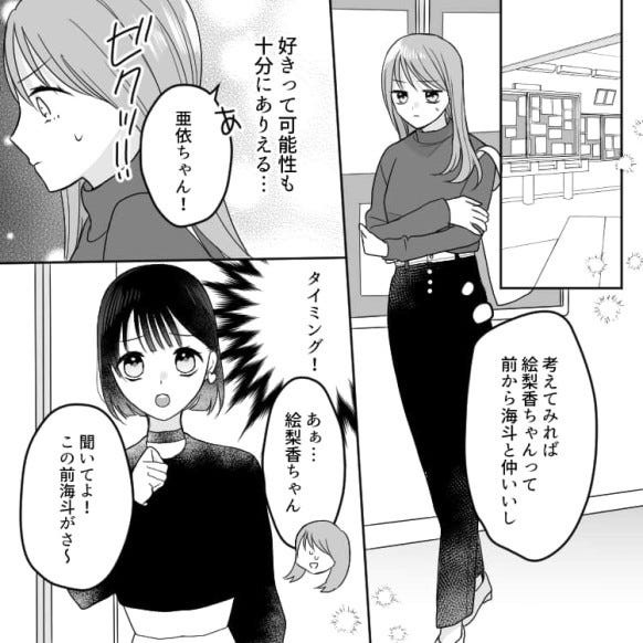 それを知った同じサークルの女の子・絵梨香から「私のほうが海斗のことを知ってるから」と言わんばかりのマウントをとられます。