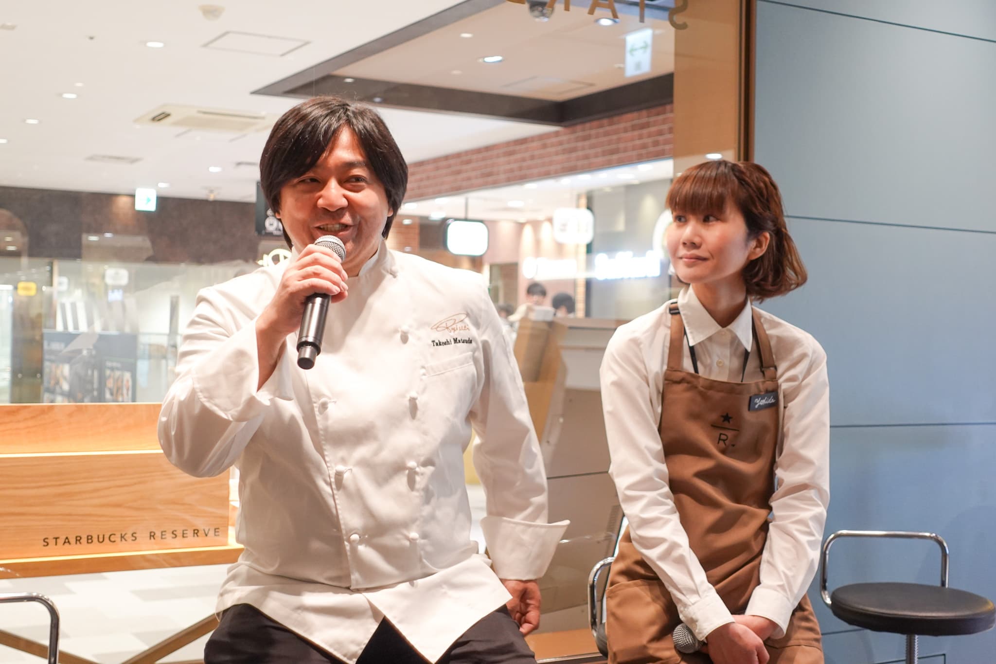 左から松田武司さん、吉田店長 「クロワッサンのコルネッティをドリンクに浸していただくディップ体験を、ぜひ試してください」とヘッドシェフの松田武司さん。大阪に来たらここに寄りたいと思える、日常づかいの店を目指します。「朝早くから夜まで、多くの方が行き交う便利な立地にお店があります。たくさんの方に、大人のご褒美体験を楽しんでいただけたらうれしいです」と、店長の吉田さんからもメッセージをいただきました。