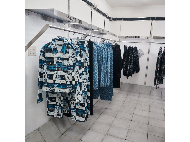 メインズは、以前から阿部氏がスケプタ氏のファンで、24年秋に仕入れたいと連絡すると快諾の返事が返ってきて、静岡店で25年春夏から扱いをスタート。7万円近くのジャケット10着が店頭で早期に売り切れ、2週間で90%を消化した。以降、「日本で扱っているのはうちだけとあって、スケプタ氏も含めて来店する人が多い」。昨年6月のパリの展示会や9月のロンドンのファッションショーを来訪し、担当者との対話を重ねて期間限定店の開催を取り付けた。協業Tシャツの企画に加え、DJイベントへと発展。「フライヤーの制作から参加する日本のアーティストのセレクションなど全て任せてくれた」と阿部氏は話す。