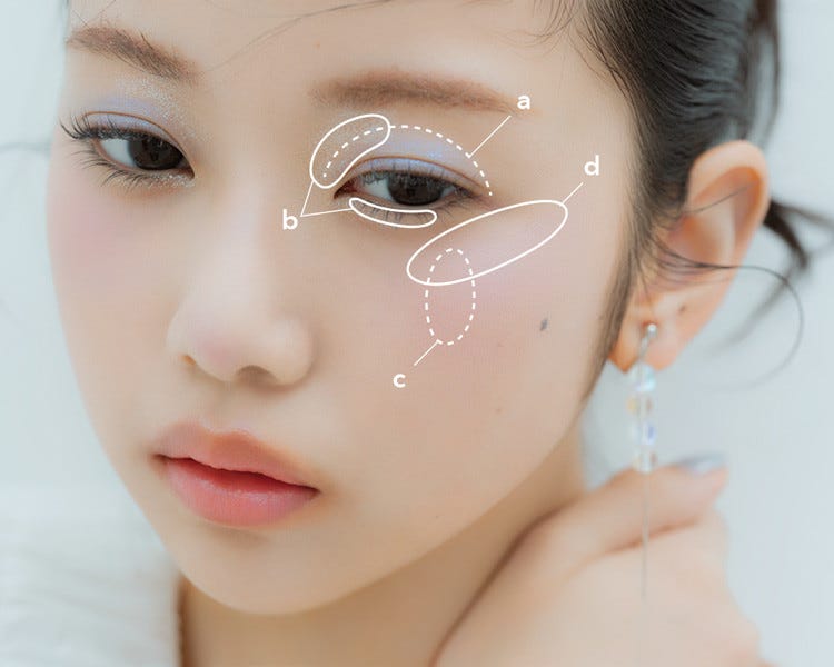 は黒目の外側の位置のほおに縦長のだ円を描くようになじませ、その上をまたぐようにd