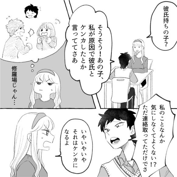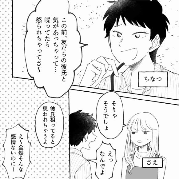主人公は友だちのちなつから、「友だちの彼氏と喋ってたら怒られちゃってさ〜」という話をされ……?