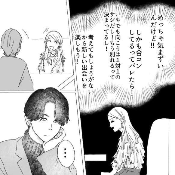 しかし彼から直接会って別れ話をしたいとのことで、後日会うことになるのですが、そのタイミングで友だちから合コンのお誘いが来ます。