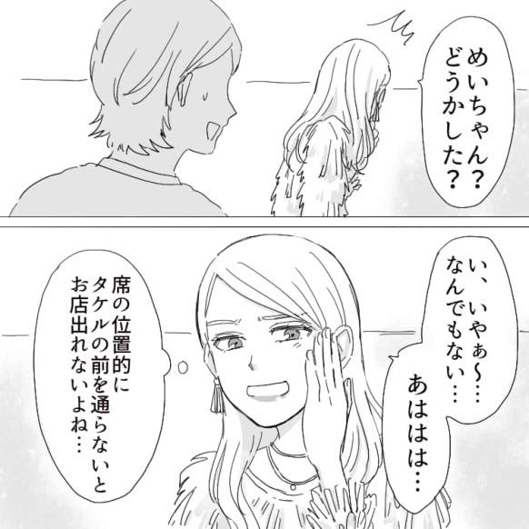 当日彼女が合コンをしていると、そのお店にタケルが入ってきました!
