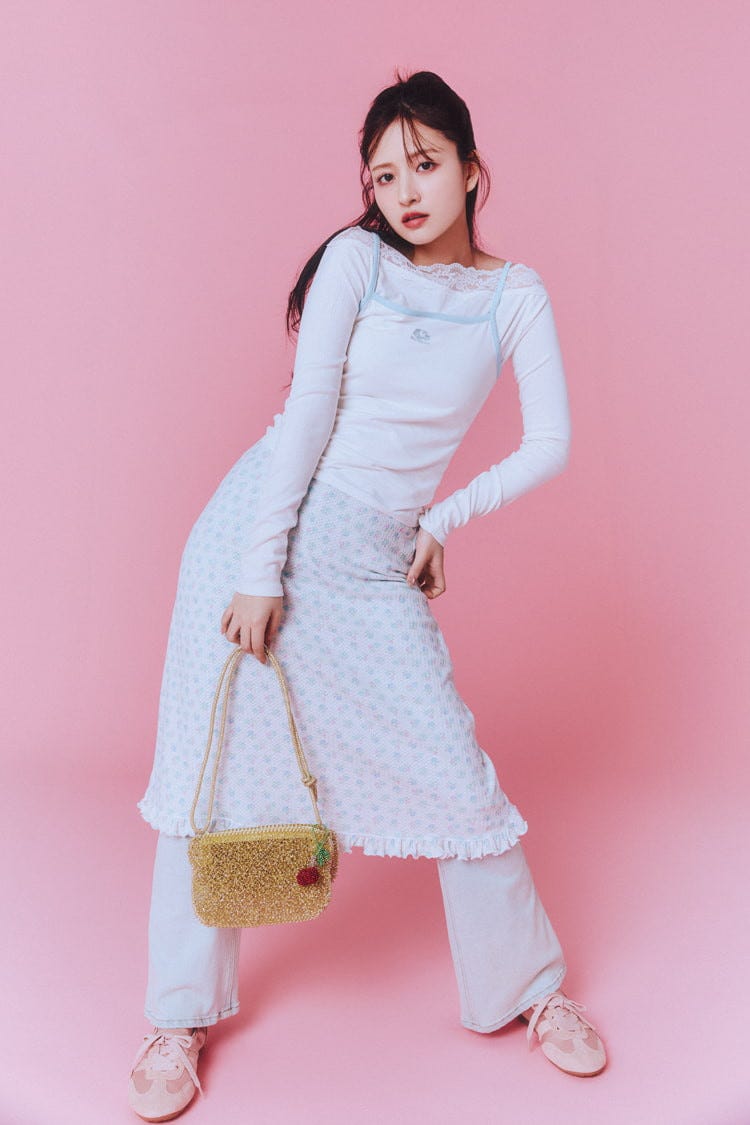 背の高い人は、ガーリーなお洋服もどこかクールな雰囲気になりがち。小ぶりな柄や、きゃしゃ見え+女みが叶うコンパクトなトップスを選べば無理のない、ほどよい甘さに仕上がる!