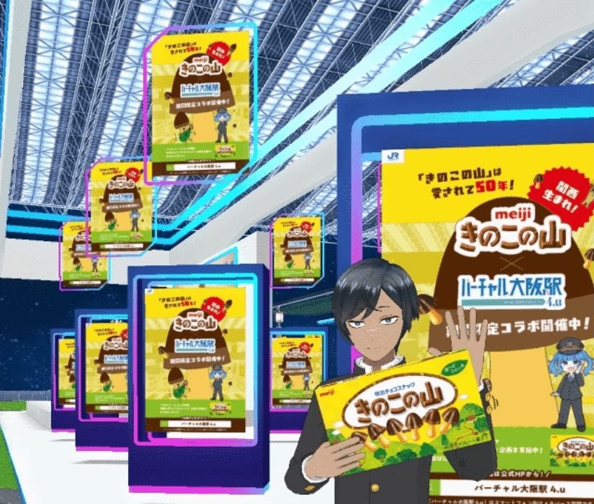 JR西日本グループのSNS型バーチャル・ステーション「バーチャル大阪駅 4.u」でも、「きのこの山」のコンテンツを楽しめるイベントが行われます!