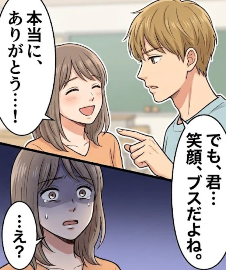 「笑った顔ブスだよね」初対面の同級生から突然の暴言!?深く傷ついた主人公に訪れた【予想外の結末】とは...!