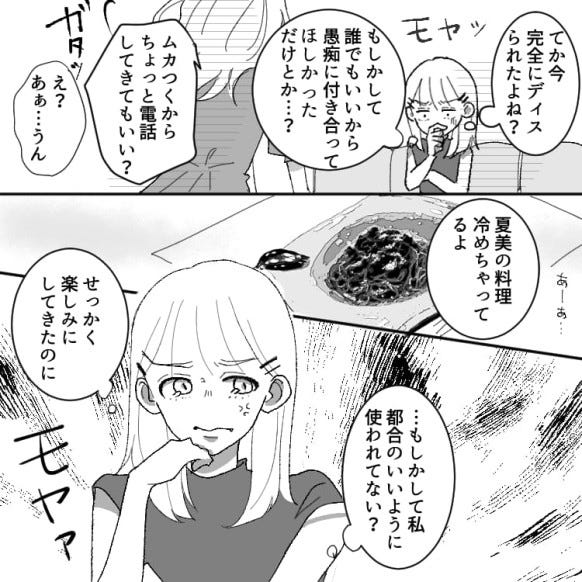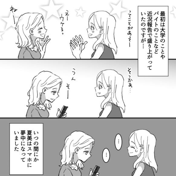 最初は盛り上がっていたのですが、次第に夏美は主人公との話よりもスマホに夢中になり……。