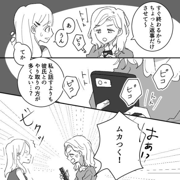「彼氏いたことないからわかんないんだよ」食事中スマホばかり見ている友だち…相談に乗ると【まさかの発言】を!?