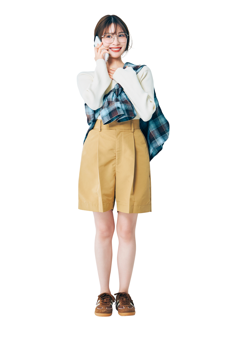 ハーフパンツはセンタープレスの入ったきれいめな素材を選んで脱コドモ化!メガネをプラスして、少し知的でレトロな“優等生風”に仕上げるのがイマドキ♡