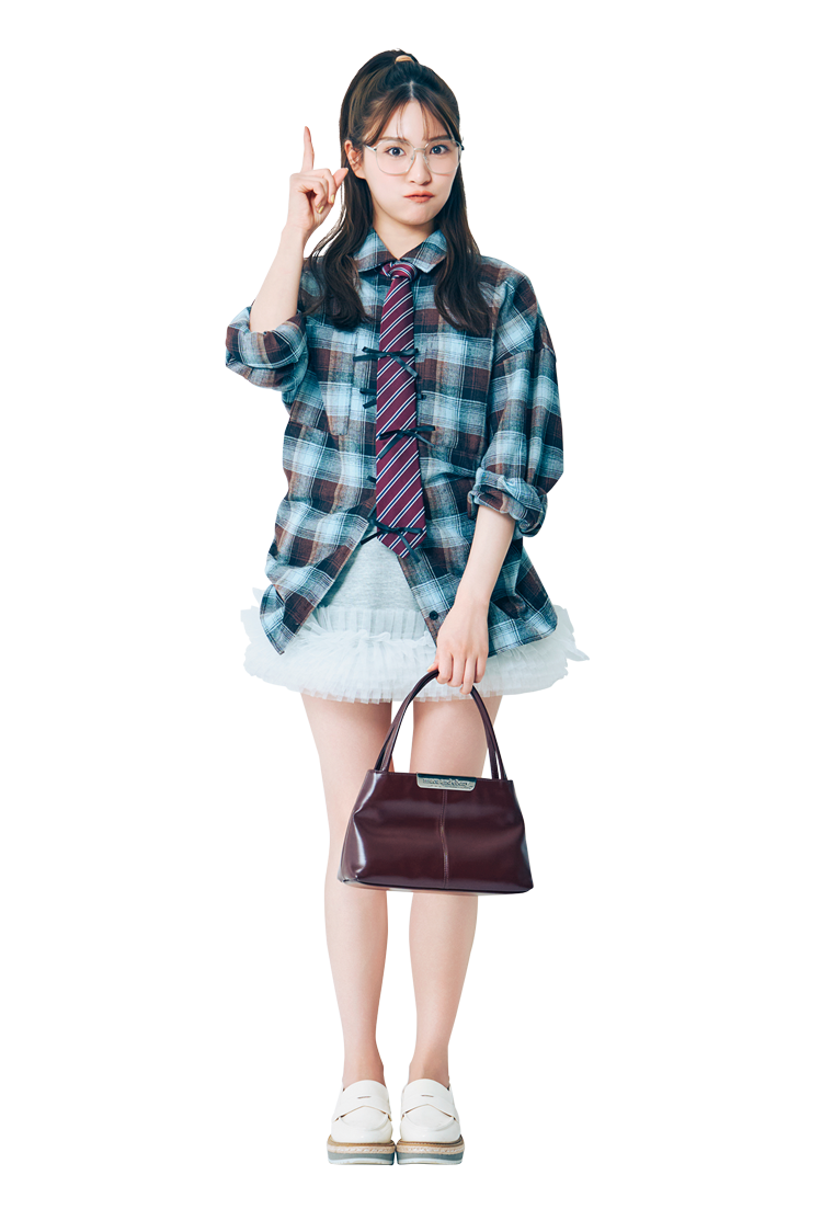 シャツはあえてボタンをラフに開けて、チュチュのボリューム感を強調するのが正解!カチッとしたバッグを持つことで、スクールガール風になりすぎず、オトナの遊び心あるスタイルに。
