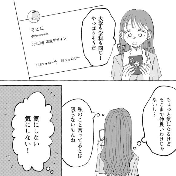 まひろちゃんの投稿を見た主人公は、「やっぱりこれって私のことだよね?」と怒りを感じます。